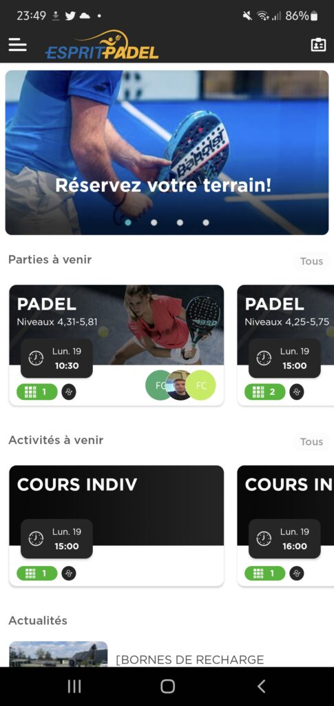 - S’inscrire aux cours individuels et à toutes les activités du club